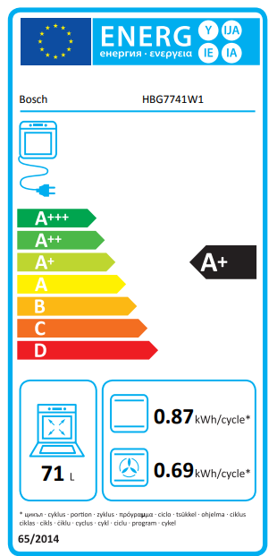 • Sütőtér nettó térfogata: 71 l