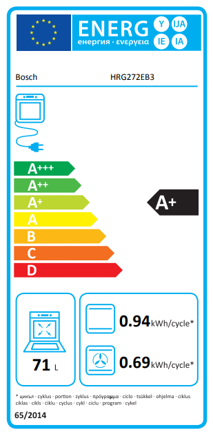 • Sütőtér nettó térfogata: 71 l
