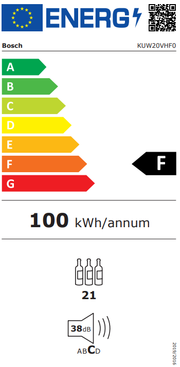 • Energiafogyasztás: 100 kWh/év (F energiaosztály)