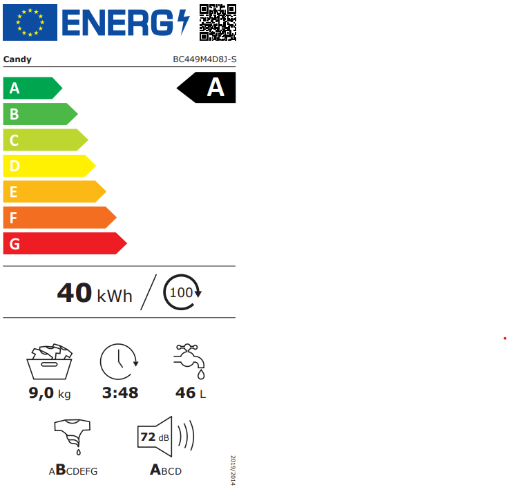 A energiaosztályú, fehér 9 kg-os elöltöltős mosógép. 1400, érintő kijlező, késleltetett indítás, inverter motorr, 16 program, .