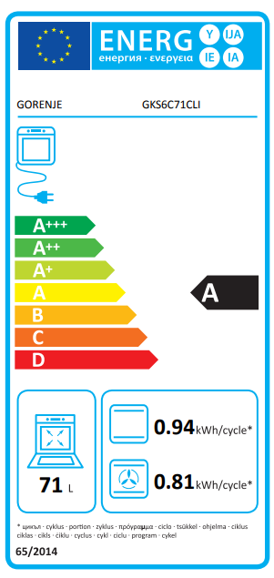 - Méretek: (Ma x Szé x Mé): 85/60/59,4cm, "A" energiaosztály,
