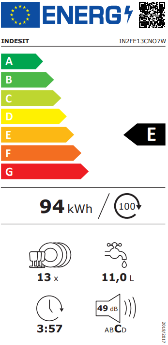 Indesit IN2FE13CNO7W 13 terítékes mosogatógép