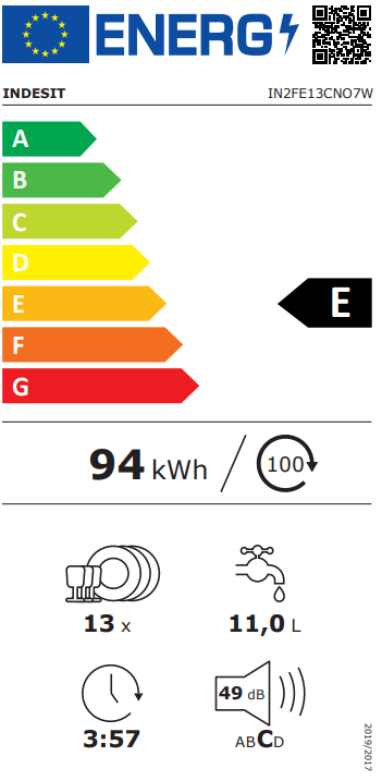 Az Indesittel a megtakarítás mindig garantált. Az E energiahatékonysági osztállyal élvezheti a nagy teljesítményt kiváló energiahatékonysággal.