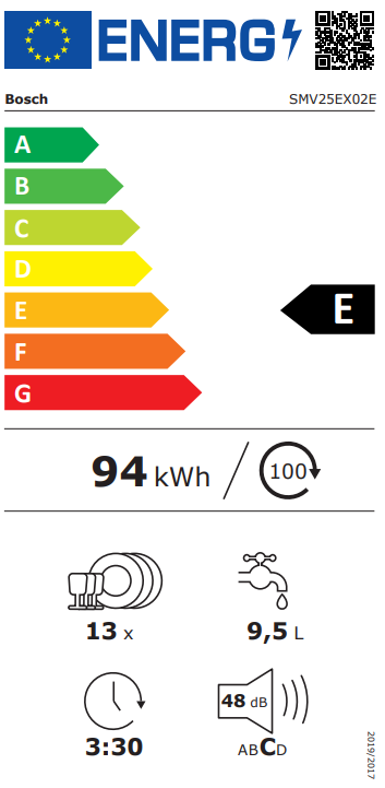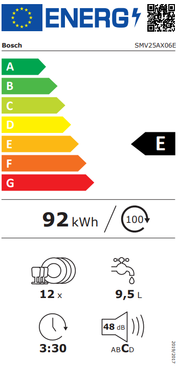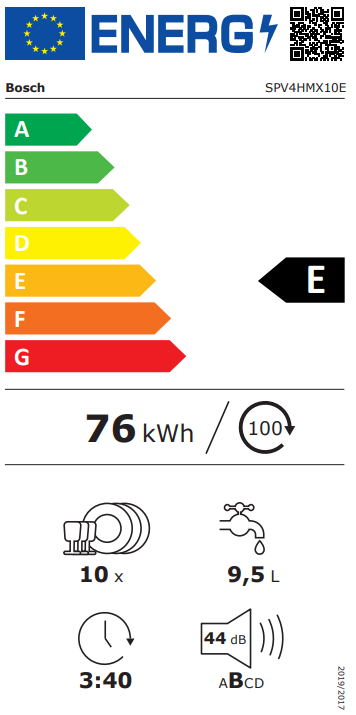 Beépíthető mosogatógép E energiaosztály
