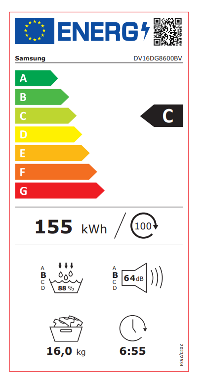Samsung DV16DG8600BVU4 fekete, 16 kg, hőszivattyús, szárítógép