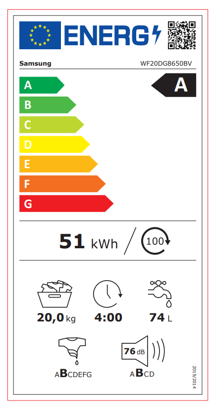Energiafogyasztás (mosás) 0.51 kWh/ciklus