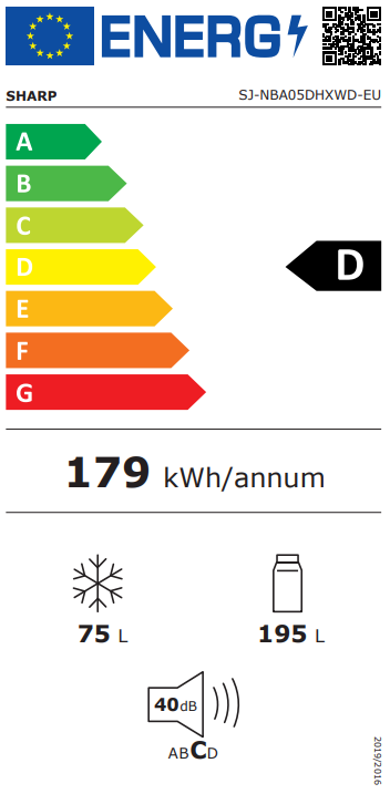 SHARP SJ-NBA05DHXWD-EU 269 literes alulfagyasztós NoFrost hűtőszekrény